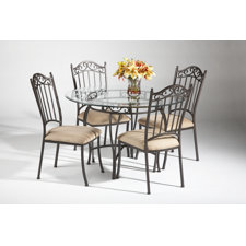 Elementally shaped black wrought iron collection features leather-like seats, Offered in 40 x 60 rectangular dining and a 42 square (36H) high dining, Eclipse is popularly priced to sell at $599 including table and four chairs. ... Fetch Here